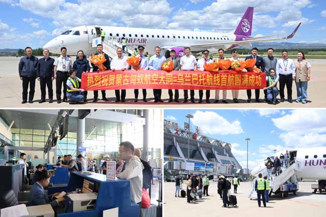 6月3日12時(shí)36分,蒙古匈奴航空MR855航班搭載93名旅客平穩(wěn)降落大同云岡國(guó)際機(jī)場(chǎng),標(biāo)志著我省首條直飛烏蘭巴托的國(guó)際航線正式通航。大同市委副書記、市長(zhǎng)劉俊義,市人大常委會(huì)黨組書記、主任武健鵬,市政協(xié)黨組書記、主席姚鴻波,市政府副市長(zhǎng)高新文以及相關(guān)單位負(fù)責(zé)人共同參加首航儀式。