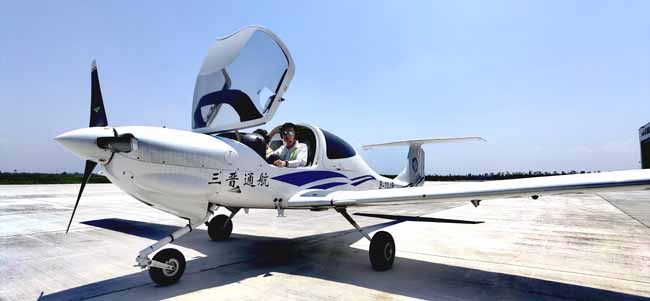 在太原堯城機(jī)場(chǎng)的三晉星空飛行俱樂(lè)部培訓(xùn)基地內(nèi),一架白色DA-40D型固定翼飛機(jī)正在跑道平穩(wěn)滑行。駕駛艙內(nèi),28歲的北京學(xué)員韓先生深吸一口氣,緊握操縱桿,額頭滲出細(xì)密的汗珠——“對(duì)正跑道、推油門(mén)、飛機(jī)滑跑、帶桿、起飛!”隨著三晉通航固定翼機(jī)長(zhǎng)趙教員的指令,飛機(jī)騰空而起,韓先生完成了他人生中的首次私照飛行訓(xùn)練。