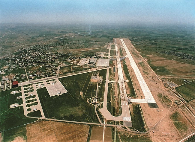 (1996年經(jīng)過(guò)機(jī)場(chǎng)改擴(kuò)建二期工程修建后的太原機(jī)場(chǎng)飛行區(qū)鳥瞰)