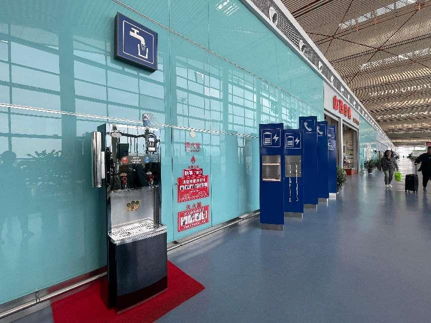 航站樓各區(qū)域設(shè)有多處直飲水機(jī),旅客可以按需取用冷、熱兩種溫度的飲用水。