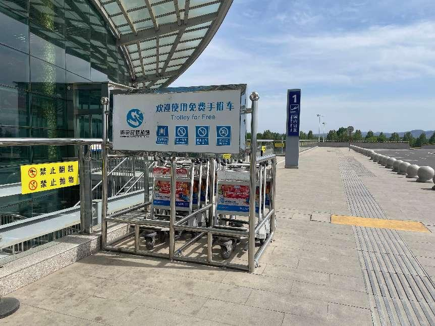 航站樓一層到達(dá)行李提取、二層出發(fā)大廳外及值機(jī)柜臺(tái)前均設(shè)有行李手推車供旅客免費(fèi)使用。